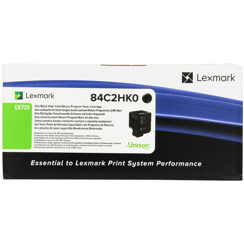 Lexmark 84C2HK0 (84C2HKE, 84C0H10), originálny toner, čierny je spotrebný materiál určený pre stabilný a presný tlačový výkon v každodennej prevádzke. Toner zabezpečuje kvalitnú tlač s výťažnosťou až 25000 strán podľa normy ISO/IEC 19752, plnú kompatibilitu s tlačiarňami Lexmark a spoľahlivú funkciu vrátane správnej identifikácie v zariadení.