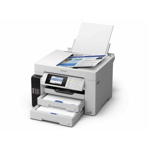 Epson EcoTank L15180 je rýchla firemná multifunkčná tlačiareň s podporou formátu A3+, ktorá kombinuje tlač, skenovanie, kopírovanie a faxovanie. Vďaka dopĺňateľným atramentovým zásobníkom prináša mimoriadne nízke náklady na tlač a technológia PrecisionCore Heat-Free zabezpečuje nízku spotrebu energie aj vysokú spoľahlivosť. Farebný dotykový LCD displej s uhlopriečkou 10,9 cm uľahčuje ovládanie.