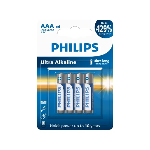 Philips alkalická batéria AAA, 4-pack, Ultra Alkaline, (LR03E4B/10)